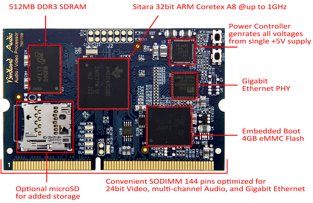 The module is particularly well suited to run device tree based Linux kernels, making customization a breeze thanks to a wide variety of drivers to chose from. Because it incorporates most of the necessary functions of a computer, and with the wide availability of software support from the linux community and other sources, the module makes it especially simple for OEMs to add network connectivity to designs without having to worry about complex PCB design considerations typical of DDR3, BGAs high-speed designs, trace impedances, length matching and emissions.