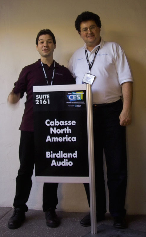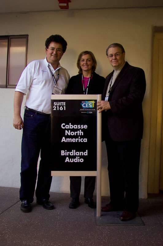 CES 2003 was a great show! We got to exhibit with a Cabasse America, a speaker manufacturer for which we have the greatest admiration. When we were first asked to team up with Cabasse's IO speaker system, we were a bit uncertain about it but after hearing the sound stage they threw with our Silver Series front-end, we were sold. And their small size certainly looked great with our compact Silver Series system.